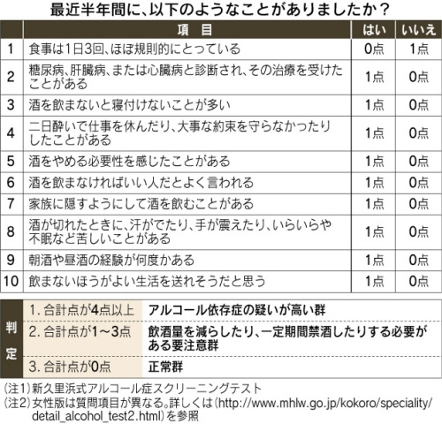 ちなみに私は、記事のアルコール依存度テストは0点でしたが、