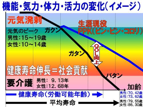 一生のうち、介護が必要だったり日常生活に支障が出るほどの病気にかかっている期間を除いた時間のことで、平成22年で男性70・42歳、女性でも73・62歳だというのである。