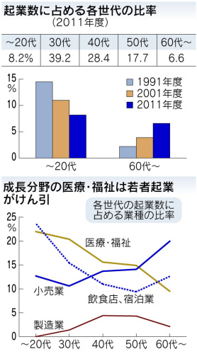 起業「老高若低」鮮明に シニア1.5倍、20代減少